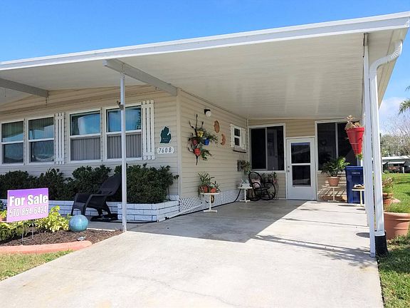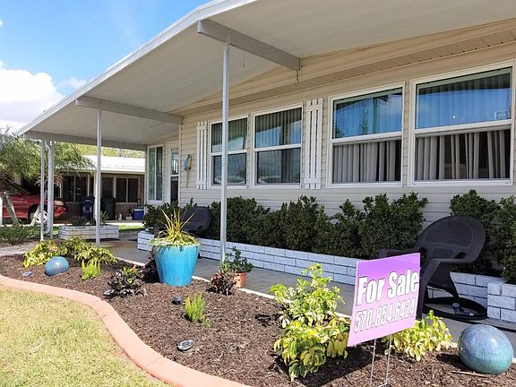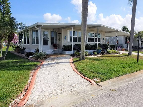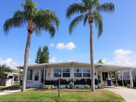 JUST REDUCED $49,000 -TURNKEY This is a lovely home with many updates. Beautiful curb appeal with a lamppost in the front yard, new landscaping, large palm trees, cement edging, golf cart path. The home also features a side driveway, carport, enclosed patio and storage shed. The enclosed patio has updated slider windows. This room could easily be a second living room. The storage shed is large and holds the washer, dryer, wet sink and refrigerator. Plenty of storage for your holiday decorations, beach gear and tools. The back of the home has a large paver patio with an outdoor patio set and a large storage shed. Beautiful water views without the high lot rent. Relax and enjoy a cup of coffee out back while you watch the wildlife. This home is move-in ready and comes Turnkey with the exception of personal items, family heirlooms, and some furniture. Inside you enter the eat-in galley kitchen with updated kitchen cabinets and ceramic tile floors. The kitchen has a pantry for extra storage and matching white appliances. Updated built-in cabinets in the dining room for extra storage. The dining room opens to the large living room. The flooring is new in the dining room, living room and Florida room. Side enclosed lanai could be used as a craft room and an office. Spacious guest bedroom with a double mirrored closet, Berber carpeting and a ceiling fan. The guest bathroom has a tub/shower combo with a large vanity. Plenty of storage under the vanity. The master bedroom is large with Berber carpeting, ceiling fan and a large walk-in closet. The ensuite bathroom has a nice dressing area, linen closet, large vanity and a step-in shower. This home has been very well maintained with many updates. There are too many updates to list, but here are a few...AC, Windows, Ceiling fan, new electrical panel, dehumidifiers, vapor barrier and more. If you are looking for a great home that is move-in ready. Look no further. Come enjoy the Florida sun. ACT FAST & CALL TODAY!! Don't forget to ask about the FINANCING available on this home. Colony Cove is an age qualified (55+) five-star resort community of manufactured / mobile homes. The "Cove" boasts 5 clubhouses, 5 heated pools, a riverfront pavilion and private fishing pier, a private marina, a fenced dog park (very pet friendly), tennis, shuffleboard, new pickleball courts, 2 new fitness rooms, 24-hour patrol, clubs for every interest, and much more. There are daily planned activities throughout the park. Bottom line, if you get bored here, it's your own fault!! The lot rent in Colony Cove is based on the homes' location. While the monthly rent may not be the lowest around, it's by far the best value for the money. Not only does the monthly rent cover all of the amenities of the community listed above, it also covers almost all other monthly expenses such as; water, sewer, trash pickup, all property taxes, lawn maintenance. . .pretty much every monthly expense except electricity and internet. The current lot rent on this home is estimated at $894.35 per month. All listing information given to us is considered appropriate and reliable but always recommend Home Inspections by independent companies who have a background and thorough understanding of manufactured homes. We cannot guarantee the accuracy of information given to us or the condition of the home. Lot rents are determined by the community office not our company.