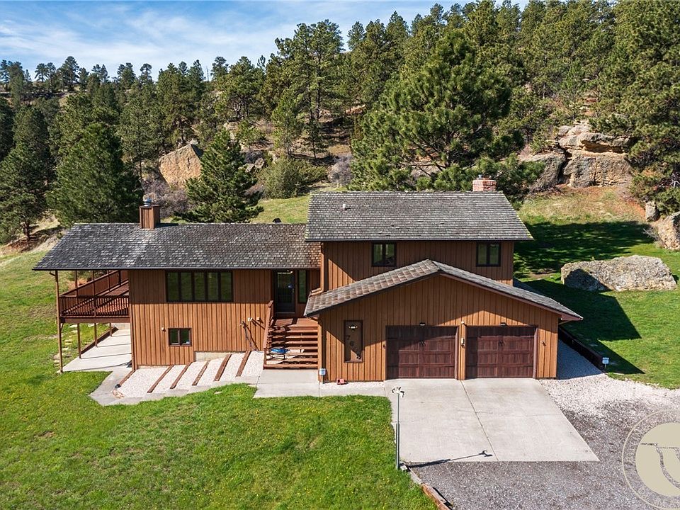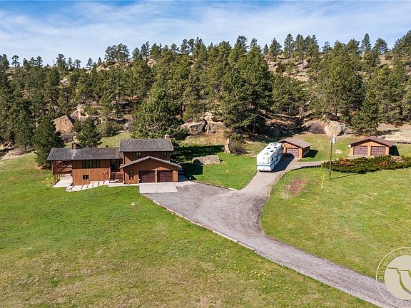 Montana living at its finest! Embrace Montana living on 3 scenic acres! This midcentury treasure is tucked in a picturesque, tree-filled canyon where deer, turkeys, and other wildlife roam freely. Soak in the views from the expansive deck or unwind in the hot tub under the stars. The home blends vintage charm with peaceful seclusion, offering timeless design and modern comfort. Two detached shops provide space for hobbies, storage, or toys. Whether you're seeking a retreat, a basecamp, or your forever home—this rare property is where Montana magic lives.