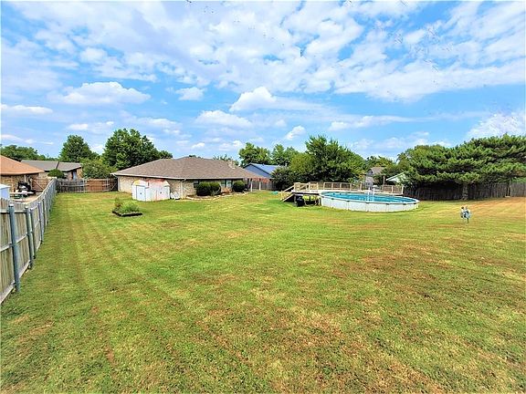 What a yard. HUGE .41 acre lot right in a Putnam City North neighborhood. Wonderful backyard has above ground pool with deck and covered back patio. Very nice, well laid out home has big living room with vaulted ceiling and beams, along with a wood burning fireplace. Kitchen has updated appliances including a glass top range and stainless dishwasher and granite counter tops. The master is really big and has a good sized closet and remodeled bath. There is a storm shelter in the garage. This home has everything you need.