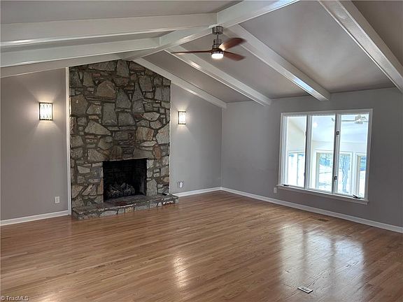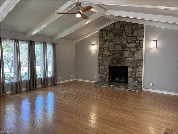 This beauty is tucked in a quiet neighborhood behind Tanglewood Park. You have to see to believe! Over 2000sqft including 3 beds, 3.5 baths, Sunroom, Finished Basement. Lots of updates throughout. Primary on main w/ huge walk-in closet (could also be nursery, office, workout space). Amazing primary bathroom featuring dual vanities, free standing tub, custom tile walk-in rain shower with body sprayers. Freshly Painted rooms. Basement Den with wood burning fireplace & wet bar. 2 bedrooms on main level & additional upstair bedroom with 3rd full bath. Open Living Room with beams and tons of light. Kitchen includes stainless appliances (refrigerator to remain) and Heartland wood cabinets. Large 10X8 Laundry Room with sink and cabinet area. No HOA fees in ideal location in Clemmons. 1 Year Home Warranty included