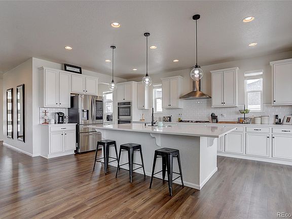 Settle into the beautiful sought-after community of Cherry Hollow at Serenity Ridge. Within minutes from parks, great shopping, fabulous food, breweries and all that Colorado has to offer, your oasis awaits. Enter your gorgeous home with an open concept from the gourmet kitchen with ample storage, a butlers nook, walk-in closet, and massive island, to the dining and living room, complete with a fireplace. Your home boasts natural light all throughout and you can enjoy your mountain views from two bedrooms. Your unique layout has four bedrooms on the upper floor, a full office on the main, and a quiet bedroom and bathroom in the basement.
