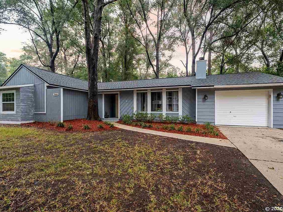 Completely Remodeled 3 bed, 2 bath home in desirable SW Gainesville community. Upon entering the home the bright spacious open floor plan welcomes you. In the family room there are three large windows, a wood burning fireplace, vaulted ceilings, wood laminate floors throughout the home, and a dining room. Upon entering the kitchen the New Quartz countertops are breathtaking, SS appliances and wood cabinets. Near the kitchen you will find your garage and laundry room with a window. Down the hall you will find 2 guest bedrooms and a completely remodeled guest bathroom. Then you walk into the owner's suite with custom closet shelving, tray ceilings with intricate wood details, a reading nook in the bay window, then a barn door heading to the brand new master bathroom with two separate vanities, walk in shower with beautifully designed tile and plenty of natural light from the window. Outside you will find a screened porch, large shed and a huge fully fenced yard. In addition to the new kitchen and baths the is Roof 2017, HVAC 2015, new interior and exterior paint.