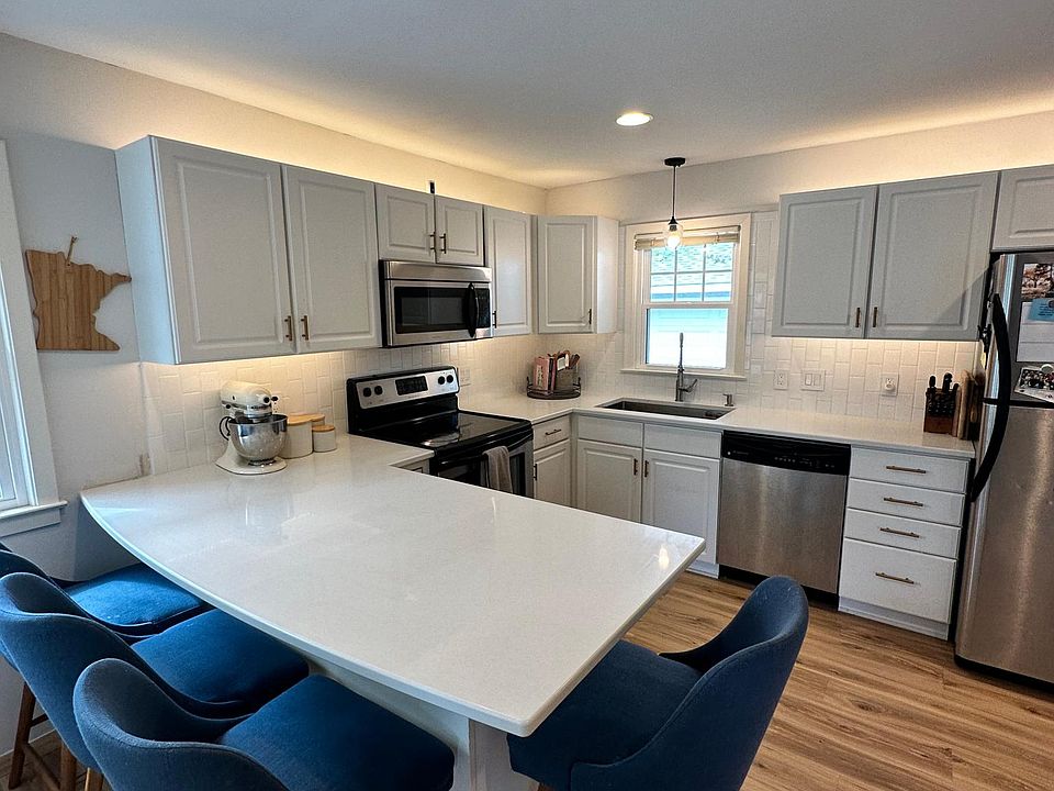 Bright, modernized, and spacious home accessible to everywhere you need! 2 mins from Fairview Southdale and Centennial Lakes, 1 block from Best Buy HQ, easy access to 494 and 35W, and 10 mins from the airport. Kitchen remodeled in 2022 complete with quartz countertops, backsplash, sink, under-cabinet lighting, and new flooring. Open concept that is extremely rare to find in Richfield! 3 bedroooms and full bathroom upstairs with a 4th bedroom downstairs, and a spare room in basement perfect for office or flex room complete with another full bathroom. Large windows in living room and kitchen allow for great natural light. 2 parking spaces in covered detached garage. New roof in 2018. Come see it today! Term of rent negotiable. Garbage covered, rest of utilities covered by tenant. No pets or smoking. 2 car detached garage, driveway, and parking available on street for free.