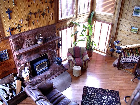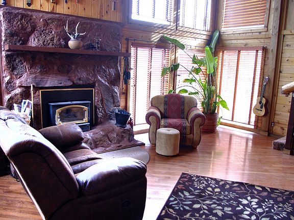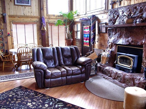 On the banks of the Purgatoire River and newly remodeled, this two story home will have you smiling from the time you walk in the door. You'll enter into a vaulted living space with large southern windows and a stone fireplace. Above is a small loft with two bedrooms and a bath. The master bedroom is on the main level, along with a 3/4 bath. The galley kitchen features a newer refrigerator and newly finished cabinetry. The interior has been refinished with a beautiful blend of light and dark woodtones, and you'll find a new gas fireplace insert, along with two new gas heating stoves in the home. Spend your evenings on the deck with the river flowing a few feet away and enjoy the peaceful quiet of the Purgatoire River Valley.