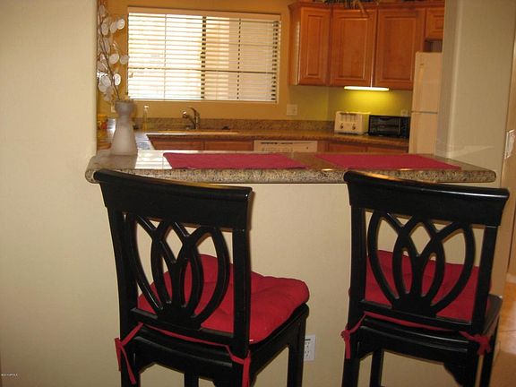 Our condo has all new modern furnishings. The master bedroom looks onto the patio, and also a view of Camelback. The second bedroom has a trundle bed with desk for a work space. Both bedrooms have there own bathrooms. Washer/Dryer for your laundry needs during your stay. The large kitchen is fully equipped with everything you will need to cook up a storm. Granite Counter Tops and all necessary appliances such as coffee pot, blender, toaster etc. WI-FI included for your convenience.The location offers the ability to hop onto running/biking/walking trails a few steps away from the front door. It has easy access to the pool and hot tub. Walk to premier shopping and eateries such as Ruth Chris Steak House, Starbucks, Wine Pub and more. Silverado Golf Club is steps from the front door, enjoy 18 holes of golf and a drink at the clubhouse before returning to your luxury accommodations. The New Talking Stick at Scottsdale Fields is the Spring Training Facility for the Colorado Rockies and the Arizona Diamondbacks. Its only 1.5 miles away. The very best restaurants and nightlife in the entire valley are 3 miles away in Old Town Scottsdale. Scottsdale Fashion Square with Barney39;s, Nordstrom39;s and more is only 3 mi. The location and proximity to everything Scottsdale offers.