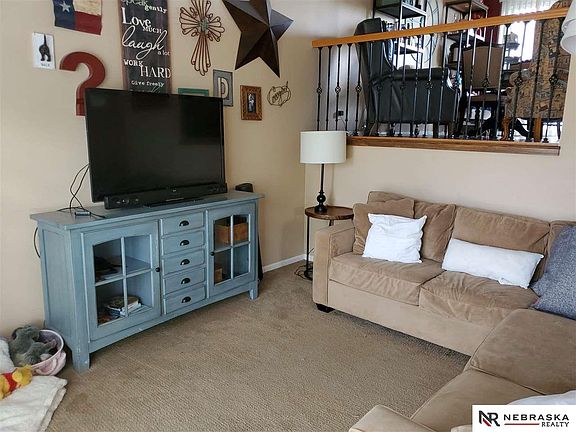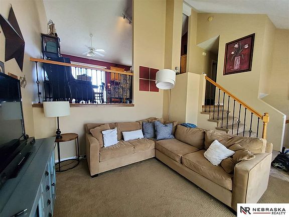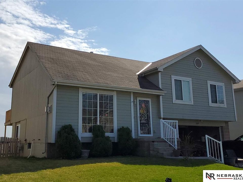 Release your creative energy in this multi-level home with walk-out basement in popular Lake Cunningham Ridge. From the moment you enter the home, you will be greeted with lots of light & a family room with soaring ceilings. Iron balusters lead you to the kitchen & dining area where you will find laminate flooring.The open kitchen has a custom island with butcher block top & stainless-steel appliances. Located just off the kitchen, is a beautiful new deck providing panoramic views to enjoy the fantastic Nebraskan sunsets & fireworks. The walkout basement can be enjoyed as a theater, office, playroom, or family room. The Home is ready for new owner to complete a few more projects that will make it your own. Enjoy the large back yard with a newer fence which is sure to keep the kids or pets occupied. Newer furnace & AC. Laundry & storage in the lowest level of the home. Plenty of potential for the savvy investor or home buyer who loves a project or two. Listing Agent has equity.
