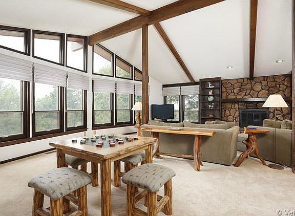 Views and custom rustic updates greet you in this sought after Pinery home! As you enter the main level you will be amazed with the repurposed 150-year-old hand-hewn Amish oak beams trimming the vaulted ceiling with views overlooking Bingham Lake and Pikes Peak. The open floor plan of the main level provides ease of living and entertaining. The kitchen has been outfitted with custom details and new SS appliances. The master suite features his & hers closets & private access to the front deck with western facing views to bask in the evening sunsets over Pikes Peak. 2 other bedrooms, 1 bath, and laundry all conveniently located on the main level. As you venture to the lower level you will be drawn to the custom wine cellar with storage for over 2000 bottles and temperature controlled. The living room provides custom built in shelving perfect for complimenting the home office or display of your most adorned belongings. The bonus room includes the custom pool table and draws you in to relax and unwind. The lower level also features 1 bathroom and utility/storage room with a large cedar lined closet. The property is draped in trees and updated landscaping lending your own sanctuary. The backyard has recently been fenced in with a 6-foot custom designed privacy fence and has optimal space for the desired victory garden. The large back deck lends great space for entertaining with ample dining and seating space. Relax in the hot tub overlooking the stunning landscaping. Also featuring a south facing circle drive and 3 car garage with storage cabinets and room for a work shop. New furnace, central AC, Humidifier. Decra Stone Coated Steel Roof.
