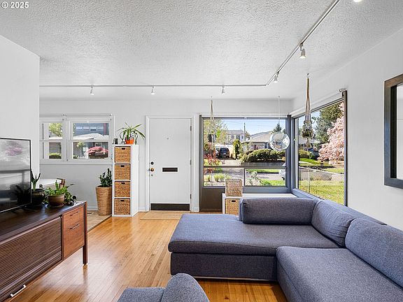 Mid-century charm meets unbeatable St. Johns location. This classic ranch-style home beautifully blurs the lines between indoors and out, thanks to near floor-to-ceiling windows that flood the space with natural light. Original hardwood floors and a warm, inviting layout create a cozy atmosphere throughout. The updated kitchen—with stainless steel appliances and a sun-drenched dining nook—is perfect for morning coffee or cooking up a feast on the gas stove. Step out into your backyard retreat that is the perfect blank slate for you to make it your own, ideal for summer BBQs or relaxed, open-air dining. Energy Efficiency Score: 10! Situated on a quiet, tree-lined street with a Walk Score of 91 and a Bike Score of 95, you’re steps from beloved local spots like Sparrow Bakery, Cathedral Coffee, New Seasons, and the St. Johns Farmers Market. Just minutes to Cathedral Park, Pier Pool, and the iconic St. Johns Bridge—your gateway to Hwy 30, NW Portland, and downtown. Enjoy the best of North Portland living where community, convenience, and nature meet. [Home Energy Score = 10. HES Report at https://rpt.greenbuildingregistry.com/hes/OR10219209]