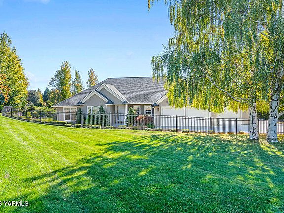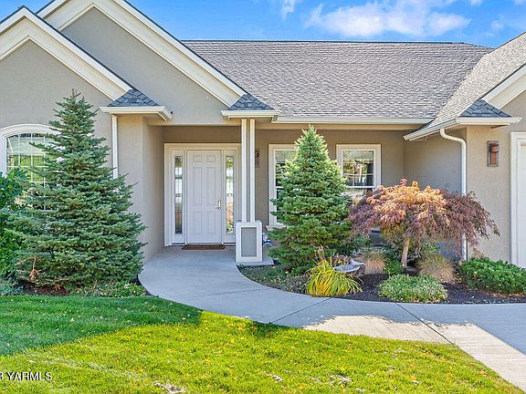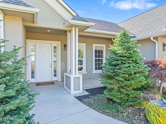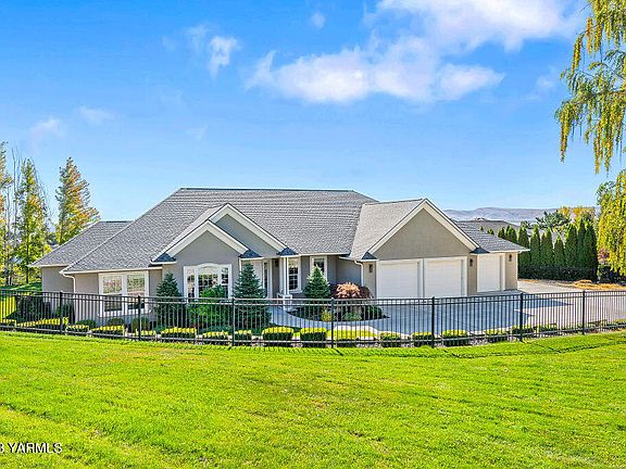 This is the view and the location you've been waiting for. Wake up and sip coffee or tea to a view of Mt. Adam's and Yakima's West Valley. This home boasts 4 spacious bedrooms plus a large den/office. The palatial primary suite is a dream with a walk-in closet that's as large as some bedrooms. There's an eat-in breakfast nook, a wet bar and a large open concept kitchen with granite countertops and custom cabinetry. Half of your lot is beautifully landscaped complete with a water feature. The other half is a managed Peach Orchard. Are you ready to call this house your home?