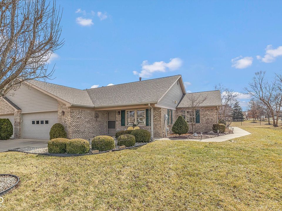 Come take a look at this large, beautiful, 2 bedroom, 2 bath, move-in ready home located in the popular 55+ Glen Ridge neighborhood. This home is all brick and sits on a large, premium, corner lot with a pond view. Home boasts wonderful upgrades and features including 9-foot ceilings with wood beams & crown molding in the living room and dining room, beautiful, stained woodwork throughout, solid 6 panel doors, and vaulted ceiling in the primary bedroom. Function kitchen offers granite counter-tops, tile backsplash, an eating area and two pantries. The flower beds are full of beautiful perennials and the irrigation system makes watering the yard a breeze. The sidewalk extends from the front porch to the back porch, really connecting the outdoor spaces. The HOA takes care of the lawn care and snow removal including the driveway. The roof and dishwasher were replaced in 2024. Carpet new February 2025. The wood pergola has a brand-new cover that the seller is leaving as well as the one used last year. This home won't disappoint!