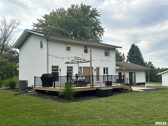 Freshly transformed 3 bed, 2.5 bath home sitting on 5 expansive acres ready for you to just unpack your boxes! Modern colors, fresh paint, new flooring, kitchen & bathrooms all updated in the past 2 years. Be captivated by the expansive sunken family room displaying a new beautiful stone framed fireplace & large windows bathing the space in sunlight. New kitchen is complete with granite countertops & abundant cabinetry. This functional space offers direct access to the newly built deck allowing for easy entertaining while the adjacent formal dining room provides a place for more intimate gatherings. The seamless flow continues into the living room, currently used as a playroom, where multiple windows allow for picturesque views of the surrounding landscape. Upstairs, you will find three bedrooms designed for comfort as well as functionality. The peaceful primary suite includes a luxurious private bathroom showcasing a new oversized walk-in shower. Moving outside, explore the five acres of land with trails made in the woods ideal for hunting, hiking, or discovering a quiet place to relax. Two-car detached garage offers ample space for vehicles & storage while its attached large workshop is a versatile area for tinkering on projects or hanging out with friends. This property offers the perfect blend of modern comfort & natural beauty, and it is conveniently located just 30 minutes from the QCA & Galesburg. Sellers are relocating for work-make their loss, your gain! Don’t wait!