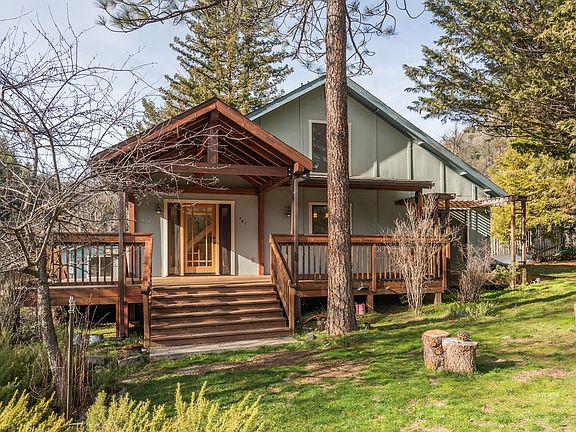 Welcome home; enjoy 6 acres with a charming home situated within earshot of the year-round creek! Large covered front deck leads to entry of the home which offers a country style kitchen & dining area that's open to the living room with wood stove & monitor heater plus wall A/C. Main level also has a large utility room, mud room with storage, full bathroom, & spacious bedroom with a sliding door leading to the deck. Upstairs is the private primary bedroom with en-suite bathroom. Warm rustic hardwood flooring throughout traffic areas, with carpet in bedrooms. Zoned Agricultural, most of the property is gently sloping & has southern exposure, with a short drop-off to the expansive creek-front area. One of the many highlights of this property is the approx. 500' of creek frontage, including a dipping pool to enjoy in the summer! There's also a separate & comfortable 'artists studio' offering extra space for guests or hobbies with kitchenette, full bathroom, sleeping area, wood stove in main area, & attached sun-room. Don't miss the chicken coop, storage & wood sheds, & fenced back yard completing this wonderful mountain property just 15 minutes to Weaverville on a paved county road.