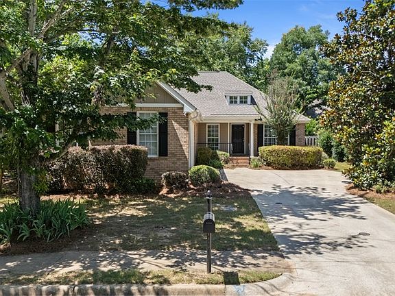 Welcome to this timeless brick beauty nestled in one of Auburn’s most desirable and established neighborhoods. This elegant home offers comfort, style, and functionality all under one roof—with every room designed to impress. Step into the inviting foyer and take in the open-concept living space with crown molding, rich hardwood floors, and soaring ceilings. Natural light fills the living and breakfast areas through large windows and French doors, offering a seamless connection to the serene backyard. The spacious kitchen features a wrap-around bar, classic wood cabinetry, tile flooring, and a functional layout perfect for everyday living or entertaining. A standout feature is the glamorous formal dining room—freshly painted in a rich blue tone—with vaulted ceilings and a picture window that brings in the beauty of the outdoors. The primary suite is a private retreat complete with a spa-inspired bath offering a large double vanity, soaking tub, glass-enclosed tile shower, and generous closet space. The home's layout flows effortlessly into a peaceful backyard, featuring a covered patio shaded by mature trees, ideal for quiet mornings or evening gatherings. The exterior is beautifully landscaped with southern charm—magnolia trees, manicured shrubs, and a welcoming front porch set the tone for refined living. Additional highlights include a two-car garage, laundry room, ample storage, and a neutral interior palette throughout. Just minutes from shopping and dining—this home offers location, lifestyle, and long-lasting value.