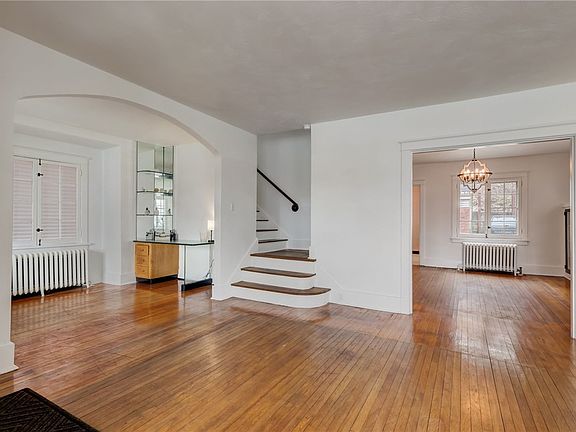 Beautifully crafted, attention to detail and functional spaces. Meticulously maintained and cared-for home. Inside, you'll immediately appreciate the craftsmanship and comfortable living space. On the first floor, you'll find a bright, spacious living room with a fireplace and Built-in shelves. Attached is an office area with a Built-in glass Desk. Dining Room with Built-in cabinets adds character and charm. The kitchen & Dinette spaces offer very rare structural Carerra Glass Tile. The richness of the colors in the tile brings a unique dynamic to the spaces and will be something treasured for years to come! The second floor offers three generous-sized bedrooms with good closet space. A full bath is equipped with a sharp-colored Carerra Glass Tile. Two more bedrooms on the third floor and a recently updated full bath with a claw-foot tub and a large walk-in closet. A full basement with endless possibilities, a two-car garage, a great front porch, and original hardwood floors!