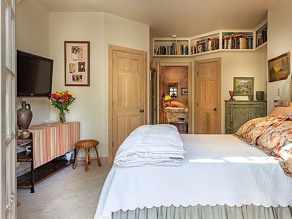 The Stonehouse Cottage is nestled in the historic residential district of Ridgway Colorado and sits on three lots of old growth trees and vegetation. The cottage was designed by well known designer Lynn Kircher and built by Kurt Quadri Construction. The design incorporates features of the early 1900s Arts and Crafts movement and also includes a feeling of southern France's Provincial cottages. The main two story house consists of two bedroom and 2 full baths, with large area upstairs for office or study. Total 1700 sq ft. Also on property, detached from main house, is a beautiful and practical garage and guest cottage. Total 600 sq ft. This cottage can be used as a studio, office, guest house or a short/long term rental.