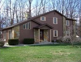This beautiful contemporary style home features 4 bedrooms, 2 baths, 28' rock fireplace, lots of hardwood, crown moulding, new counter tops, covered screened in deck, updated light fixtures, and an over sized garage with bonus room. All on a 2 acre wooded lot. Square footage per appraisal. Chandelier in upstairs bedroom does not stay.