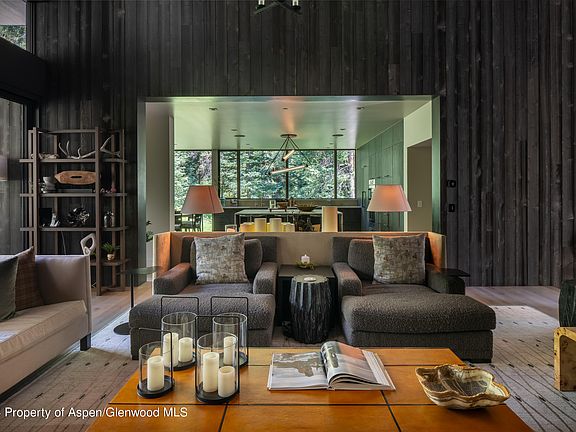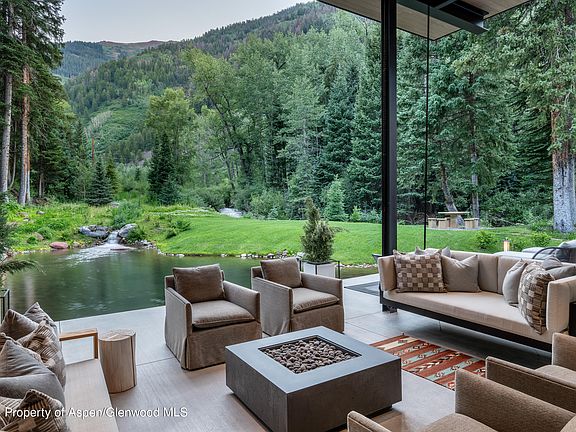 The residence at Sno Shu Creek is a zen modern masterpiece in the Conundrum Creek Valley. Local architect Studio B has created an absolute luxury retreat that exists flawlessly in the stunning mountain setting. A curated landscape design feels effortless, bringing together streams, a pond with water features, trees, wildflowers and the mountain peaks beyond. The single level living floor plan includes four plush bedroom suites and a central great room, kitchen and dining. Every room has its own unique view of the natural beauty surrounding the house. Channeling five star resorts, the indoor and outdoor living spaces flow openly, with the outer decks ending right at the water's edge, giving the entire space an infinity feel. Relax in the hot tub or lounge seating with front row views of the valley above. Shou sugi ban custom wood siding covers the exterior, adding to the sophisticated character of the home. A glorious hideaway from the nearby center of Aspen, nestled just below the trailhead to the Conundrum hot springs, perfect for hiking or horseback riding, with world class cycling on Castle Creek Road just minutes away.