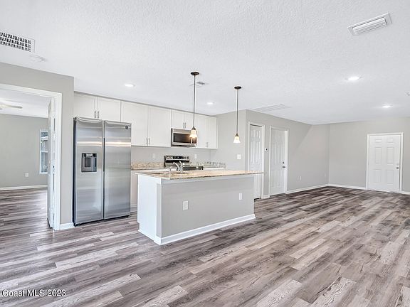 Built in 2022...LIKE NEW!! Only a little over a year old, this home is filled with upgrades, and ready for you to call it home. NO CARPET...Luxury vinyl throughout. Why wait to build when you can move in now to this wonderful home in the growing area of Palm Bay. Far enough away from the hustle and bustle to enjoy the peace and quiet, but close enough to enjoy plenty of shopping and dining options nearby. Huge backyard...and NO HOA, so bring all of your toys! Freshly painted interior. This home is ready to go.