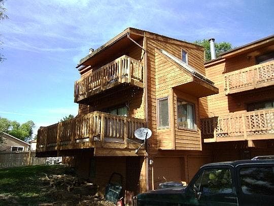 This end unit townhome has an excellent set up with two master bedrooms each with their own bathroom, walk in closet, and one with a balcony. On the main level you will find an open living space, an up to date kitchen, and half bathroom. There is also a second deck from the living room with large windows that offer great natural light. The unit has washer and dryer hook ups downstairs and lots of space for interior storage plus a storage closet on the side of the building. There is off street parking and a two car garage for your use from the lower level. A side yard is maintained by HOA and is located closest to your unit leaving you very minimal yard responsibilities in front of your unit. Call to schedule ahead!