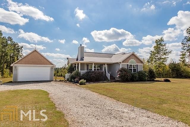 Don't miss this jewel in the country! Two acres with a place for a pasture and a garden. Secluded and quiet area, yet minutes from I-75 access to Atlanta or Macon. Gated driveway and security light. Charming floor plan with wood laminate flooring, a vaulted great room and a beautiful stone fireplace. Kitchen is vaulted and has black appliances and granite counter tops. All the bedrooms have wood laminate flooring and spacious closet space. The master bedroom has a walk in closet, is vaulted & is split from the other two bedrooms. Enjoy sitting on the wrap around front porch or grilling out on the spacious deck in the back. There is a detached two car garage & additional guest parking. The swing set is an added bonus if you like. New roof and HVAC in 2011.