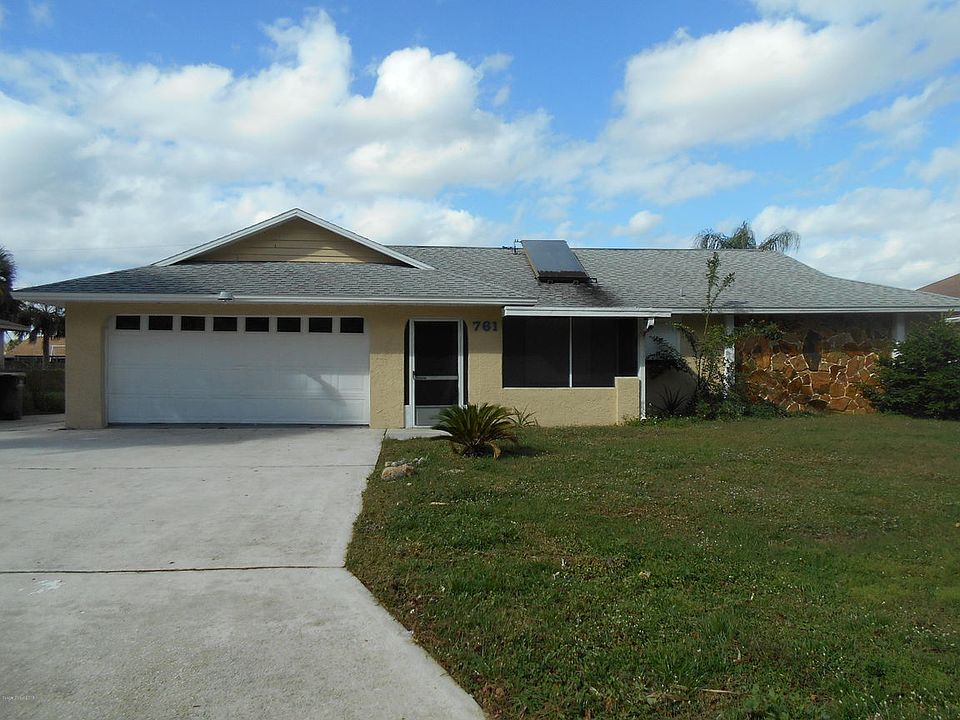 Great opportunity 3 bedroom, 2 bath 2 car garage concrete block home has open floor plan with lots of potential. Kitchen has lots of counter space, dining room, large family room with ceiling fans, title throughout, master bedroom has walk in closet. Spacious yard has screen in porch, large shed with concrete slab for additional parking. Home needs some TLC. Close to schools, shopping and major roads.
