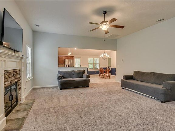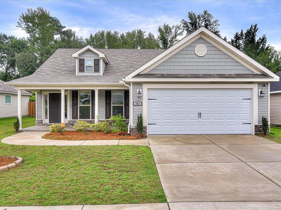 Don't miss this incredible, move in ready, well maintained, 1 story find in Grovetown! This very popular, open floorplan features a large living room with FP and oversized kitchen with cathedral ceilings, tile floors, stained cabinets with granite countertops, power pantry fitted for an extra refrigerator and stainless appliances. The covered front porch opens to a large foyer with beautiful trim and an arched entry to the living area. The owner's suite is very private and features a huge walk in closet and bath with separate shower, garden tub, double vanity and linen closet. There are 3 additional nice sized bedrooms, laundry room and 2 car garage. Out back, you will find a covered back porch, additional patio and partly fenced back yard which backs up to a wooded area. This neighborhood is quiet and friendly with plenty of great amenities including walking trails and a pool. REALLY low power bills with istalled SOLAR PANELS. Don't miss this affordable, very nicely appointed, spacious home!
