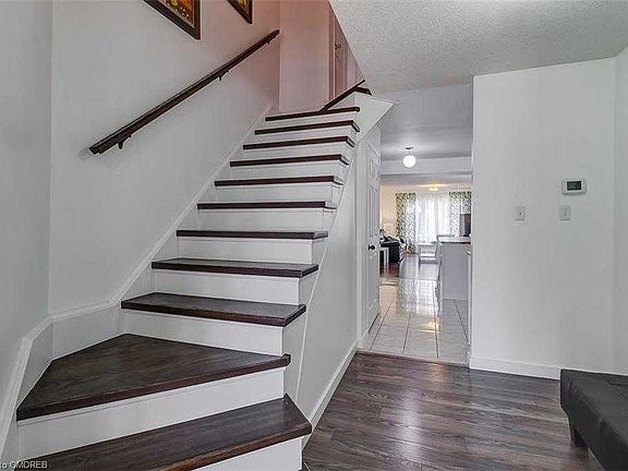 Welcome to Milton here is a great three bedroom townhouse located in popular area. Close to schools,shopping, & playground area. This property features a spacious main floor. There is a open concept living room, dinning room and kitchen with eating bar, a two piece bath and laundry completes the main floor. The upper level features three good sized bedrooms. Master bedroom has a large sized closet plus there is a full three piece bath on the main floor. This house also offers a full finished basement, built-in garage and very lovely backyard.