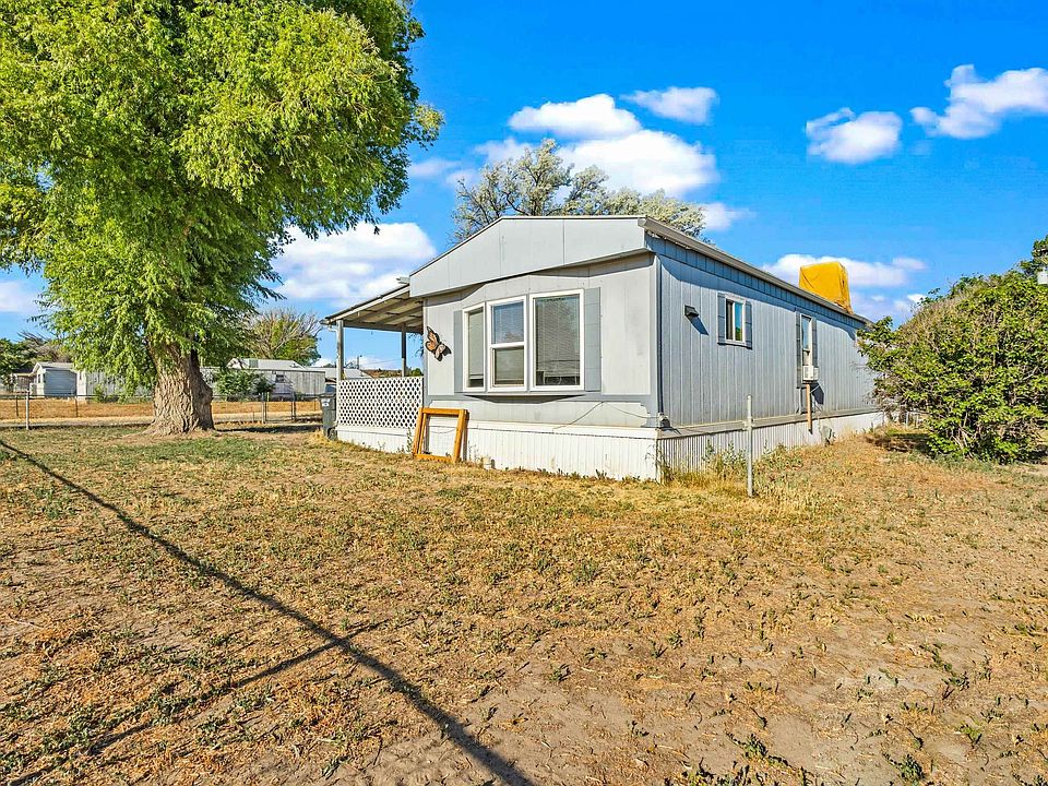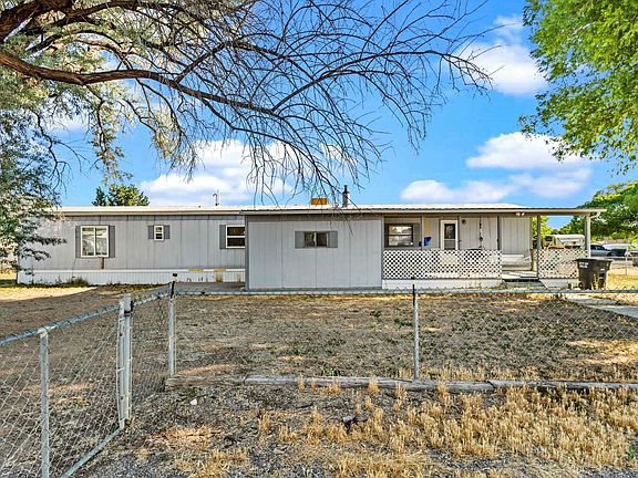 Affordable living in this spacious 2 bedroom, 2 bath mobile home that sits on .28 of an acre. Plenty of room to build that shop you have always wanted. There are 3 storage units and an attached storage area to the home. There is irrigation water through the HOA at $90/ per year, so let your outside gardening skills shine. A new furnace was put in in 2021 and the trailer was weatherized underneath in 2019 and with added insulation. The home was hooked up to City Sewer in 2019. Enjoy can the pellet stove in the living room and make your winters nice and warm. Newer flooring in the hallway and both the bathrooms and main bedroom. One of the most affordable homes on the market today, schedule your showing today before its gone.