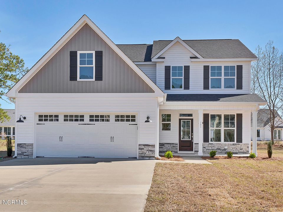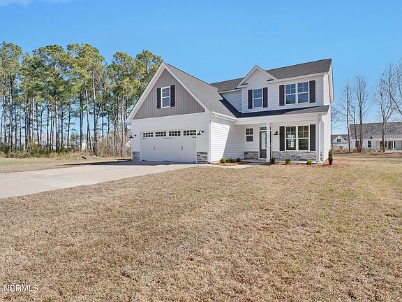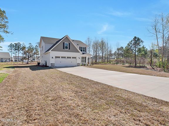 Move in Ready! This .52 acre private home is located in southern Hampstead within the Majestic Oaks community. Featuring 5 bedrooms and 3.5 bathrooms, this new construction home offers 2800 sq footage. On the first floor you will find an open layout with LVP & crown molding in the main living areas, formal dining room with coffered ceiling, gas fireplace in the great room, kitchen with granite countertops and tile backsplash & stainless steel appliances. Large kitchen island with bar seating and plenty of storage is situated next to the breakfast nook overlooking the private back yard & covered back porch. Master Bedroom on the first floor with full tile shower and walk in closet. Laundry room & mudroom with built in cubby for added storage. Upstairs you will find 4 additional bedrooms, 2 full bathrooms, an office area and an oversized bonus room over the garage that can be used as flex space. New Construction homes are hard to find in southern Hampstead which offers quick access only minutes away from Wilmington. Last property in the community on the left before you get to the 3.85 acre HOA common area and pool which gives this home added privacy and easy access to community amenities.