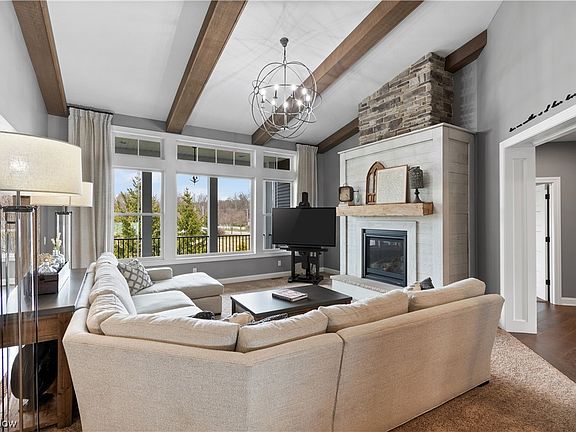 Welcome home to this luxury 2 story in desirable Danbury Glen Estates in Lake Local schools! This 4 bedrm, 3.5 bath custom Rembrandt built home is situated on a corner cul-de-sac lot w/ gorgeous views of the pond. Upon entering the home, you’ll notice the beautiful hardwood flrs leading you to the expansive great rm w/ amazing wood beams & cozy gas frplce w/barn beam mantle. The kitchen boasts an 8 ft. center island, quartz countertops, tiled backsplash, high end S/S appliances, & a butler’s pantry complete w/ coffee bar! Enjoy your morning coffee on the covered deck. You'll love working from home in the 1st flr office adorned w/ barn doors & accent wood wall. The mudroom is the perfect drop zone w/ built-in cabinet & bench style seating. The 1st floor owners retreat will not disappoint! Relax in the luxurious ensuite bath w/ beautiful dual vanities, soaking tub, & walk-in tiled shower w/ multiple shower heads! A half bath & 1st floor laundry on the main floor. Upstairs you will find 3