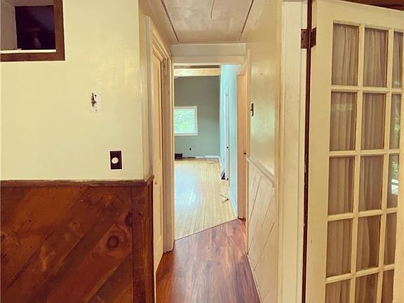 Two bedroom, 1 bath Ranch home with 2 car detached Garage on one acre lot in desirable Pomfret! Lots of potential in this property including hardwood floors, cathedral ceiling in living room, oversized enclosed porch/three season room to increase living area and a slider onto the back deck. Detached 2 bay Garage with loft. Pond on property with fruit trees, perennials and mature plantings, outbuildings and plenty of space for a garden.