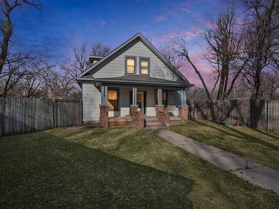 Looking for an adorable home on acreage within the city? Look no further! This amazing home sits on a half-acre lot and is only minutes from Downtown Wichita and Riverside! It has newer hardwood floors in the over sized living room (27.5 x 18.2), both formal and informal eating areas have tile floors, there is also main floor laundry, an updated bathroom, beautiful original woodwork, an adorable porch swing, a large fenced yard (with a playset!), two car detached garage and a long driveway perfect for parking extra cars, trucks or RV's! There is also an office/bonus room with carpet, built-in cabinetry, storage and a large window to let in plenty of natural sunlight. The home itself is centrally located and sits only minutes from Sedgwick County Zoo, Riverside Park, Downtown Wichita, Sim Park Golf Course, museums on the river, and plenty of shopping and restaurants! Schedule a showing today of your future home! All information is deemed reliable but not guaranteed.