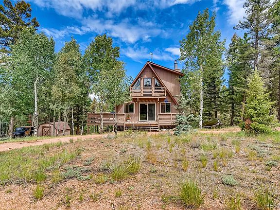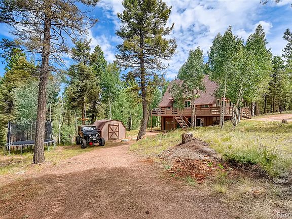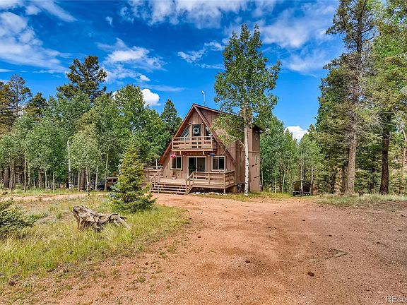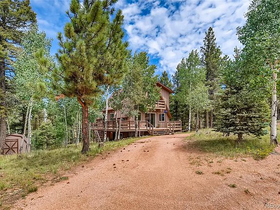 Enjoy this peaceful and private retreat on 1-1/2 treed acres just south of Florissant. This updated country home features a large wrap-around deck, gorgeous aspens and pines, and an easy-access circular driveway (bring the RV and toy trailer). The main level has wood floors, tongue & groove pine ceiling in the living room, a remodeled 1/2 bath, cozy wood stove, large country kitchen and dining area. The upper level has two bedrooms and a full bath. The master bedroom has a private deck for morning coffee or and evening book. Ceiling fans in the living room and upper bedrooms keep temperatures comfortable. The 14x 12 lower level bedroom area has a large closet, 1/2 bath and a private entry door, giving this flexibility for a walk-out family room or guest quarters. The laundry room with has space for a wine cellar, beer brewing or storage. There is an oversized attached one-car garage as well. Three energy efficient Rinnai natural gas heaters and wood stove keep you cozy. Supplemental electric baseboard heat provides total temperature customization. Newer vinyl window throughout. High speed internet available If you are ready for more room to stretch out and enjoy Colorado, this is it! This home is very conveniently located with quick access to Woodland Park and Colorado Springs. Roads are County maintained. Colorado Mt Estates boasts a private entrance to Dome Rock State Wildlife Area, minutes to Florissant Fossil Beds, 20 minutes to 11 Mile Canyon. Work from Home and Play from Home!