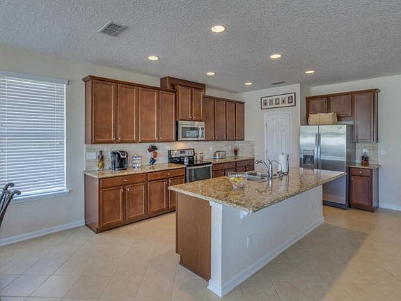 Gorgeous two story home with water view! Open kitchen with granite counter tops, stainless steel appliances, and food prep island/ breakfast bar. Master suite features detailed recessed ceiling and huge master bath with garden tub and separate walk in shower. Open floor plan with a breakfast nook and spacious family room. Sliding glass doors lead out to the immaculate stone patio which features a lanai and covered hot tub! HUGE backyard boasts beautiful lake views, perfect for relaxing after a long day!