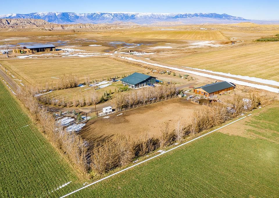 • Exterior Features: Flat Terrain, Horse Property, Hunting, Irrigated, Landscaping, Mountain View, Production Ground, Recreational, RV Parking, Shop, Barn, Corrals, Guest House, Sprinklers, Patio