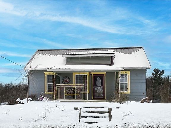Quaint bungalow in Burgettstown Boro with loads of potential and convenient location off of Route 22 and super close proximity to The Pavilion at Star Lake. Cozy covered front porch. Custom milled cherry woodwork throughout the main level from the doors and floors to some walls and even the laundry shoot. Updated spa-like bathroom with custom hickory vanity and beautiful tile work. Basement is plumbed for a bathroom and has french drains along the perimeter. With a little over a half an acre, the backyard has plenty of land to roam and enjoy the outdoors. Hot Tub on rear maintenance free deck included. Metal roof only 9 years young and detached tandem garage/ wood shop built in 2008. Great for a first time home buyer or investor for an air B & B by the concert venue. Property does have a shared driveway.