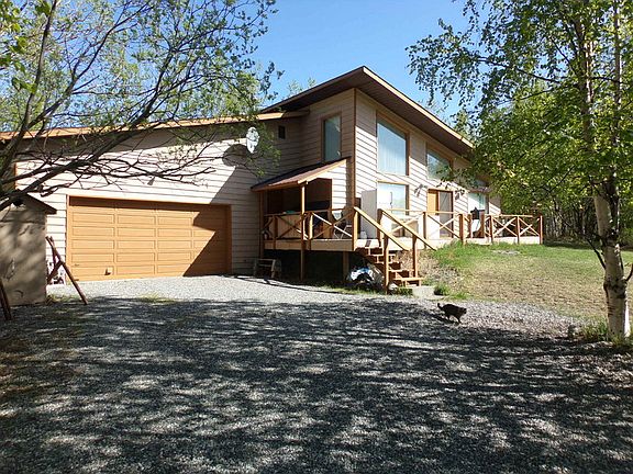Introduction: Please click on the Video Vitual Tour link. Once you have done so click on the various heading links including Terms of Sale for a complete discription and more detail. Contact Owner Directly Only. Our home is located in Brentwood Estates, one of the nicest subdivisions in the valley and in the best possible location. Location: This home has one of the most perfect valley locations imaginable. The home is located one mile from Walmart and Sears and less than two miles from the new Valley Medical center with no need to drive the Parks Highway as you can just take the frontage road to these locations. Lowes and Brown Jug are two miles away and so is the Fire Station at the corner of Seward Meridian and the Palmer Wasilla Highway. It is four miles to the heart of Wasilla and a little less to Three Bears bulk store. Serrano drive connects between the Parks Highway and the Palmer Wasilla Highway making it very easy to access either. There is a postal contract station at the Palmer Wasilla Highway just 0.8 mile away. And, if you are commuting to Anchorage this is one of the easiest valley commutes around, just 36 miles to Sears in Anchorage down a smooth, well lite, four lane all the way. Not like the old days! Room Description With a southern exposure and a lot of glass on the south wall, you can count on a bright sunny living & dining room. The kitchen is open design with a breakfast bar so the bright warm sun also lights up the kitchen. The kitchen, dining area and both entryways are tile for easy cleaning, you don't have to worry about you or the kids tracking in mud water or snow. We loved the kitchen when we bought the house. Larger than most and the open design makes everyone feel like they are always together even when mom is cooking. The master bedroom has it's own bathroom with a real marble vanity top. The bathrooms have tile floors and tile accents. Children If you have children you will love this area. Lot's of playmates everywhere so you don't have to drive to find friends for you children. And, the school bus stops in front of your door. All our daughter's years of school she never had to wait outside for the bus. You can watch it coming down the road with plenty of time to head out and get on. Cottonwood Elementary school is just 2 miles away on Seward Meridian next to the fire station. Middle School will be Teenland and High school will be Colony High Garage The garage is big and roomy and has all kinds of storage space. There is a loft area for additional storage and access to the attic and even more storage. There is a set of large storage shelves and a heavy duty work bench just waiting for your first project. There are two lockable outside storage areas under roof so you don't have to get wet to use them. You will have room to keep your garage space open to park your cars so you will have a nice warm car in the morning with no ice to scrap. Yard The home has a large south facing deck for barbecuing and enjoying the outdoors. The yard is designed to afford you privacy. Rimmed with trees along Serrano Drive and the neighboring yards you can enjoy yourself outside and hardly ever be seen. Behind the house is more than a half acre of woods that can be accessed on foot or from an adjacent subdivision road.