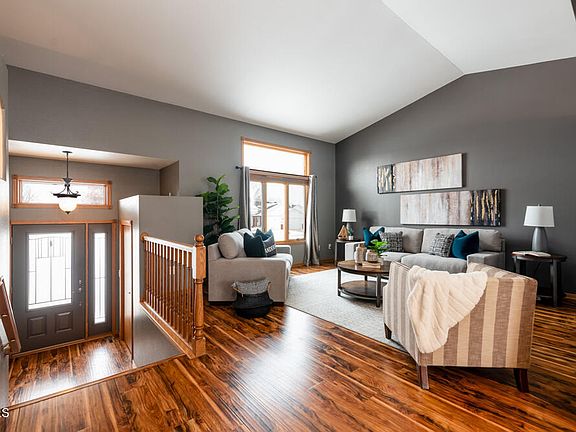 This immaculately maintained and well-kept 5-bedroom, 4-bathroom home in a highly sought-after location exudes charm and character. The attractive front entrance with brick column adds to the home's appealing curb appeal. Step inside to a spacious foyer with a generous closet and get a glimpse of the expansive living room with cathedral ceilings and stunning hardwood flooring. The kitchen boasts updated countertops, a stylish backsplash, modern flooring, and sleek stainless-steel appliances. Adjacent to the dining room is a maintenance-free deck, perfect for entertaining, which leads to a LARGE backyard featuring a custom patio and fire ring area. The Primary Bedroom features a vaulted ceiling for an added touch of luxury. Throughout the home, you'll find updated flooring and light fixtures, as well as upgraded bathroom countertops. But the cherry on top is the dream garage - a triple-wide space with an additional tandem section, along with a dedicated camper pad. This finished, heated garage includes a floor drain and hot/cold water supply. The home is also wired for surround sound.