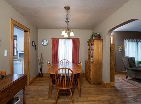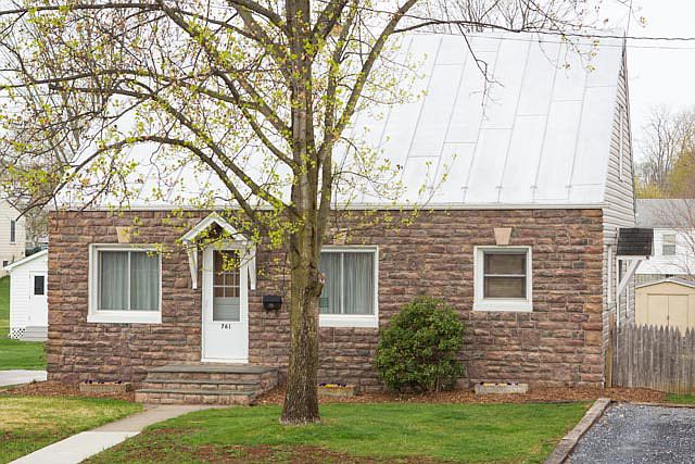 Pristine city home with stone facade & metal roof! Gorgeous hardwood floors in living room & dining room. Full bath has been remodeled. Upstairs rec room. Plenty of storage in full basement. Rear deck and fenced back yard.