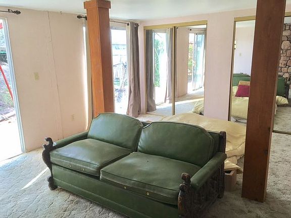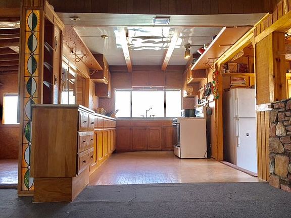 This one of a kind art piece home that originally started as a caboose! This home is perfect for large family. Main house has 5 bedrooms 3 full baths one with Jacuzzi Tub. Three large living rooms one with circular arched ceiling. Home has many large windows. Large kitchen second floor with second kitchen and dining room for entertaining. Large laundry room. It also has two guest houses with full baths. Large garage and shop--numerous bonus rooms, storage rooms and large closets. Downstairs and upstairs gas fireplaces with beautiful rock chimneys. Six foot wooden fence around back of property. Gravel parking for approximately 20 cars on site. Two rock staircases. Separate bar, skylight on second floor, rock pond. Panoramic view of the Eastern Sierra. Too many amenities to note. This is a one of a kind unique home! short sale. This is ALL CASH PURCHASE. Sold AS IS.