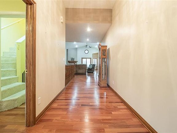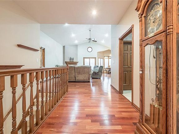 What a stunning home with the best view on the pond. You will be impressed the moment you enter the 16x6 foyer that opens to the spacious great room featuring soaring ceilings and a gas log fireplace. The kitchen and dining space are to the right with amazing views of the deck and the pond. The master bedroom is a true oasis with a sitting area, private door to the deck and a spa bath with all the amenities you could want. The custom 8x7 walk in closet has plenty of room for all your clothes. But wait, there's still the finished basement, the huge laundry room and a 4 car finished tandem garage!! The back of the home features a mini barn and a huge wood deck where you can see simply beautiful sunsets. There's a retractable awning too.