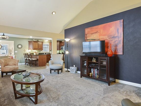 This beautiful open-concept condo is move-in ready! Foyer entry to the large bright living room with cathedral ceilings and a gas fireplace. Kitchen has quality cherry cabinetry with black granite countertops, breakfast bar, and stainless steel appliances. Sunroom has tray ceiling and 3 walls of windows to let all the sun in, as well as a door to the patio. Master suite has a large walk-in closet and master bath with double sinks and a new toilet. Guest area of the house has a bedroom with cathedral ceilings and a hall bath with a new toilet. Large laundry room with cabinetry, as well as a 2-car attached garage with utility sink. Other updates include on-demand water heater (2017), added furnace humidifier (2018) and new carpet in the entire house (2018).
