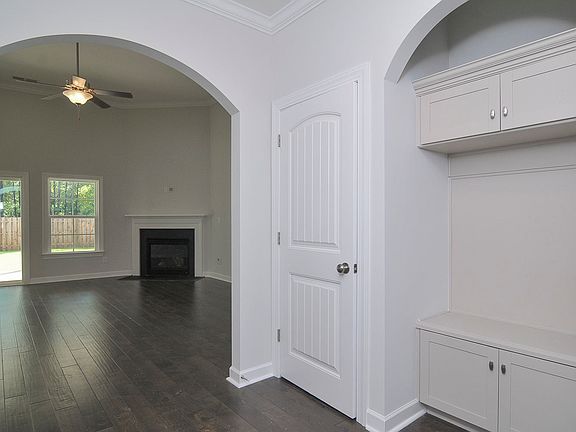 This Allerton plan with three bedrooms and two baths offers luxurious one-level living! Arched openings welcome you as you enter and hand-scraped hardwood floors extend throughout the main living areas. The family room and the open island kitchen with spacious dinette have twelve-foot ceilings and the master bedroom has a ten-foot ceiling. The family room and master bedroom both open to a spacious covered porch and the master bath includes a huge 5-foot x 5-foot tile shower! The kitchen has painted gray cabinets and stainless appliances including a gas range. All countertops are granite and both bathrooms and the laundry room include ceramic tile flooring. An automated irrigation system extends from the professionally landscaped front yard to the private fenced back yard.