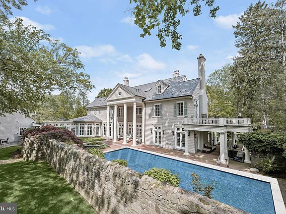 EVERYONE'S FAVORITE HOME IN EDGEMOOR! Standing amongst the Capital Region’s great estates, 7610 Fairfax Road is a poster child for classically elegant east coast living in one of the nation’s most sought after communities. Sited on one of Edgemoor’s largest lots behind nostalgic white picket fences, this home is the quintessential old world colonial radiating a storied charm presented in a fully restored, renovated modern package, located just a stone's throw to vibrant downtown Bethesda. One of five original Edgemoor homes designed by famed illustrator NC Wyeth and father to Andrew Wyeth, the spectacular estate was constructed during the dawn of a golden era in American history and is architecturally significant with original millwork, mantles, and period details. A gracious crescent-shaped driveway affords an elegant approach and effortless curb appeal. A wraparound covered porch dominates the ideally-proportioned facade, topped by a recently installed slate roof, reminiscent of the homes showcased in old Hollywood films. Likewise, the arched entryway opens into a traditional reception area, with the grand staircase lining the perimeter of the foyer. Gleaming dark-stained Heart Pine floors are a metaphor for the rest of the home, as they set a timelessly luxurious tone with a contemporary flair. Formal rooms harken back to a bygone era of lavish entertaining and are proportioned accordingly, such as the living room with six sets of French doors opening onto the rear gardens. The dining room is equally elegant, its walls of windows and accent lighting curating an exacting atmosphere for evening festivities. Meanwhile, the library’s rich paneling and roaring fireplace offer a serene retreat. In the informal wing, the chef’s kitchen is a stunning showcase. Cascade marble floors, stacked inset cabinetry, thick-edge stone countertops, and a suite of Wolf, SubZero, and Viking appliances each represent the pinnacle in culinary facilities. An adjacent ethereal breakfast nook and family room with wall of windows separated by pocket doors completes the space. An enclosed breezeway directly accesses the garage. The primary suite is nestled in a private wing on the upper level. It boasts a sumptuous marble bath with separate vanities and a large jetted tub, as well as a commodious dressing room befitting a home of such caliber. Two secondary bedrooms are ample in scale and each feature modern ensuite baths with dual vanities in addition to walk-in closets. A convenient laundry room is also located on this level. The top level is a true multipurpose space. Two additional large bedroom suites can serve as teenager or au pair accommodation, a fitness center, media room, or private office, offering endless flexibility. Furthermore, a cathedral, beam-ceilinged loft above the detached garage makes an ideal recreation space. A den and sixth bedroom suite are tucked away on the lower level. The stunning, level, ⅔ acre lot is truly showcased in the rear of the home. A spectacular double-height portico framed by ‘Gone with the Wind’ columns is adjacent to the newly-constructed heated pool, where the wraparound porch also offers refuge from intense summer sunlight. An al fresco dining area, fire pit, and outdoor barbecue enables entertaining on a grand scale, while extensive hardscaping, verdant foliage, and extensive fencing creates a totally private, tranquil oasis. Architecturally significant, spectacularly designed, thoughtfully modernized, and meticulously crafted, 7610 Fairfax Road lies at the intersection of past and present but will undoubtedly remain timeless far into the future.