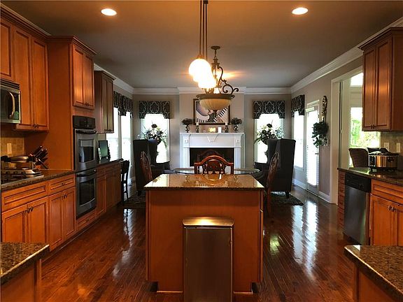 - Kitchen Features: Cabinets Stain, Eat-in Kitchen, Pantry, View to Family Room, Kitchen Island, Pantry Walk-In, Solid Surface Counters, Keeping Room