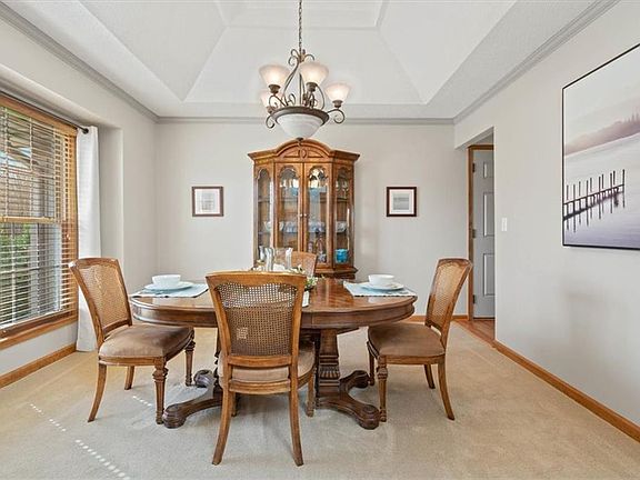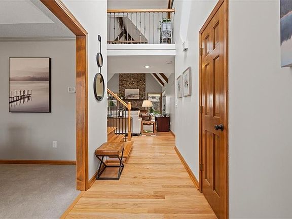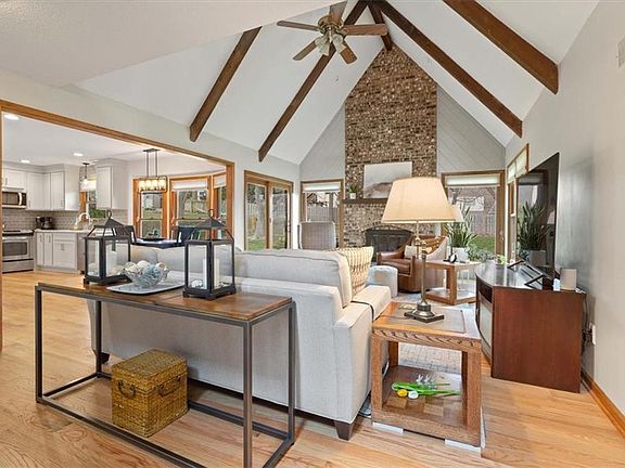 Welcome Home! This lovingly cared for charmer features an open floorplan, hardwood floors, vaulted ceilings, beautiful floor to ceiling brick fireplace, remodeled kitchen with stainless steel appliances, main level master suite with large bathroom, and walk-in closets, lots of natural light and much more! The finished basement provides plenty of extra living space with a huge rec room. Enjoy entertaining this spring on the brick patio and partially fenced yard. Located on a quiet cul-de-sac close to great schools, shops, dining and Seven Hills Lake. Don't miss out!