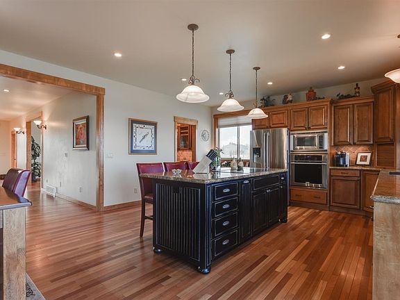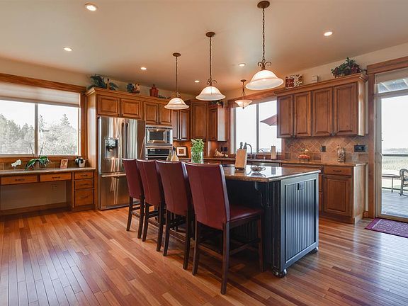 Truly one of the best views in Spokane, panoramic to the east. 5 bdrm, 3.5 bath & office. Huge beautiful gourmet kitchen, granite countertops, maple cabinets, stainless appliances. Cherrywood floors, butlers pantry, formal dining. Large mstr bedroom w/deck and views. Amazing mstr bathroom, walk-in shower, jetted tub, huge walk-in closet. Basement has theatre room, bathroom, finished bedroom. New roof, new rain gutters. Covered deck out back, check this amazing property out with the virtual tour.