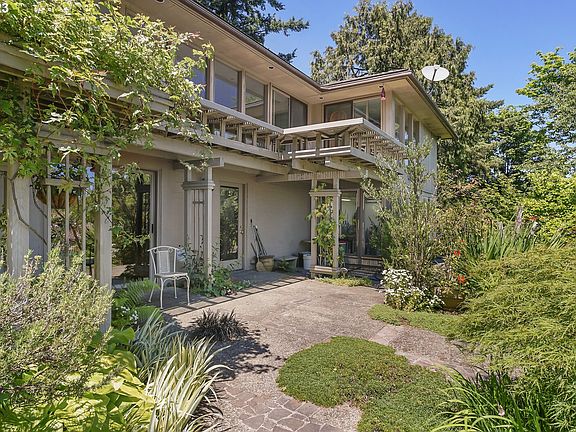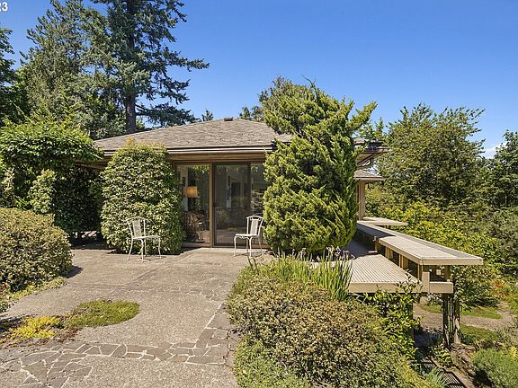 A portland gem with stunning mt. hood views and exceptional grounds designed by landscape architect who lived there. This remodeled mid-century modern has an architectural look with unique spaces (indoor flower room) that ooze charm and sophistication. Deck off the living room overseeing large terraced backyard make home perfect for entertaining. Large windows flood entire home with light all day long. Master on main (and what a view!). Large lot, walking path and close to services in Hillsdale neighborhood. Private, architectural, brilliant. OPEN - seller to do no repairs. seller to make decision on offers friday 8/25 at 5pm.