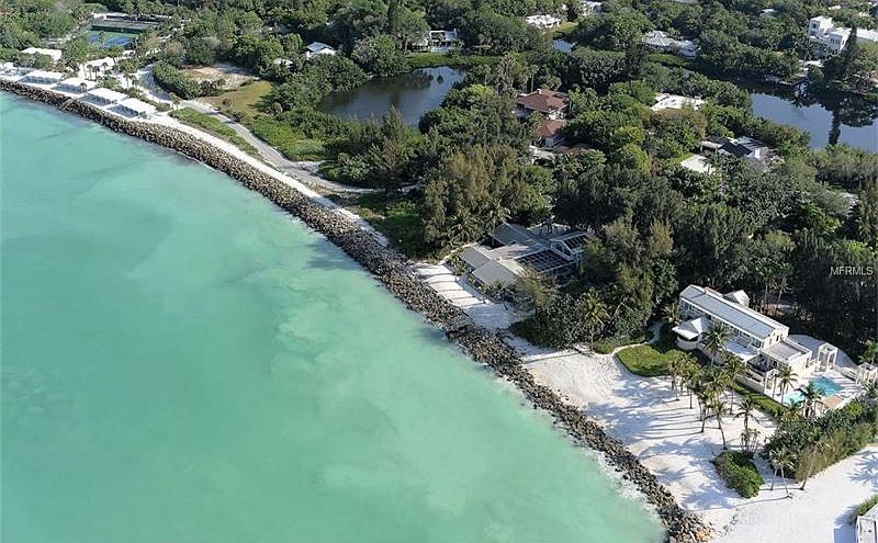 This breathtaking gulf-front estate property, located in the exclusive Sanderling Club on Siesta Key, presents a rare opportunity for the discerning buyer. At just under one acres, with 200 feet on the Gulf of Mexico, the expansive water views and tropical surroundings provide the ideal setting to create a magnificent waterfront residence. The home's current owners have worked extensively with renowned architect Guy Peterson to design a stunning, modern home in perfect juxtaposition to the lush foliage and endless sea and sky. Preliminary plans are available to the buyers if they choose to make this elegant estate home a reality. The existing cottage features 3 BR/3BA and is joined by a 2 BR guesthouse across a heated pool and terrace. The spacious living room has 9'' ceilings, a wood-burning fireplace and wood floors. The guesthouse features a game room with kitchen, pool table and bar. The two car garage contains a workshop and ample storage. A hardened shore, with a romantic walkover for watching sunsets and launching kayaks, provides added protection for the crystal sand beach on this wonderful property. The Sanderling Club is the only gated gulf-front community on Siesta Key, offering estate-sized home sites, a historic clubhouse and beach cabanas designed by Paul Rudolph, 3 tennis courts (one Har-tru), a playground and a 15 boat marina with direct bay access, all for the exclusive use of its Members only.