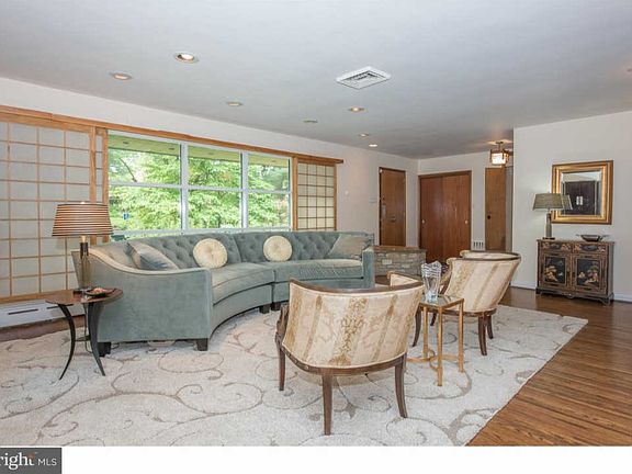 Mid Century Modern conveniently located on a beautiful tree lined street. Don't miss this home that has been lovingly maintained. Recent cosmetic updates make this home a MUST SEE! Clean lines and minimal style grace the large living room with its front windows and beautiful Shoji Screens. The room flows into the Dining Room great for entertaining! Custom Wood Mode Built-ins offer all the storage you could ask for! Large eat in Kitchen with Wood Mode Cabinets, stainless steel gas cooktop area with hood and stainless backsplash, Corian Countertops, Jenn-Air wall oven, microwave, dishwasher and matching refrigerator. A cook's delight! Oversized Master Bedroom with 2 walk in closets and ensuite. Two additional bedrooms are nice sized with plenty of closet space. Hall Bath features double sinks and large Roman tub. A few steps down to the Great Room, complete with built ins and Decorative Fireplace and hardwood floors! You will find an additional Bedroom and Powder Room with endless options. Full sized Laundry Room with outside exit with two Car carport and expansive shed storage. You will enjoy hours of relaxation and entertaining on gorgeous grounds and large Patio area. This home has been freshly painted and Brand New Carpets installed upstairs. Additional features include hardwood floors, recessed lights, til in double pane windows, many led lights, gas hot water high efficiency 3 Zone heat and Central Air, new hot water heater, Aprilaire humidifier and economical heating bills. Conveniently located walking distance to Melrose/Elkins Park Station with easy access to Center City/Airport. A quick commute to area Universities and Hospitals, 309,476 and Turnpike.